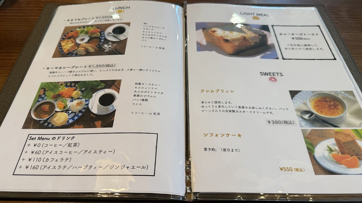 The menu shines with delightful offerings like the Kimagure Plate, featuring homemade bread, rich lasagna, and fresh salads, all crafted with a gentle touch. The lasagna, in particular, stands out for its creamy richness. For something heartier, don't miss the Curry Cheese Toast, a perfect harmony of melted cheese, aromatic curry, and crunchy bread.